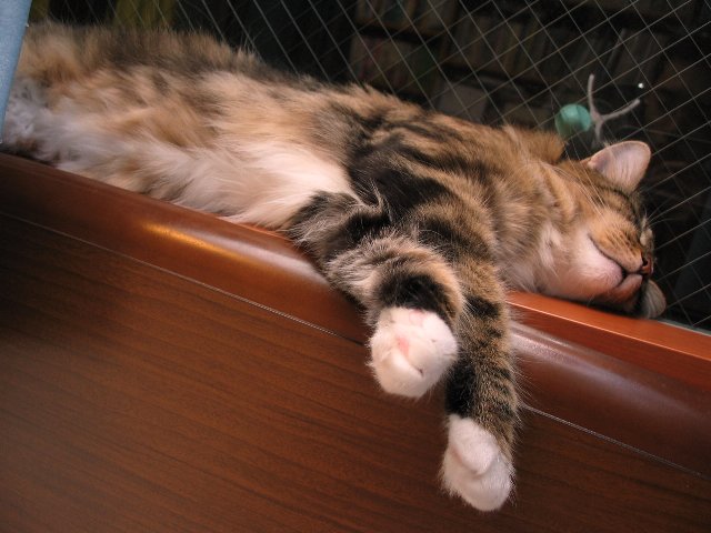 いつも高いとこか、ごみごみしたところに寝てるので写真に残しにくいみーさんです(涙